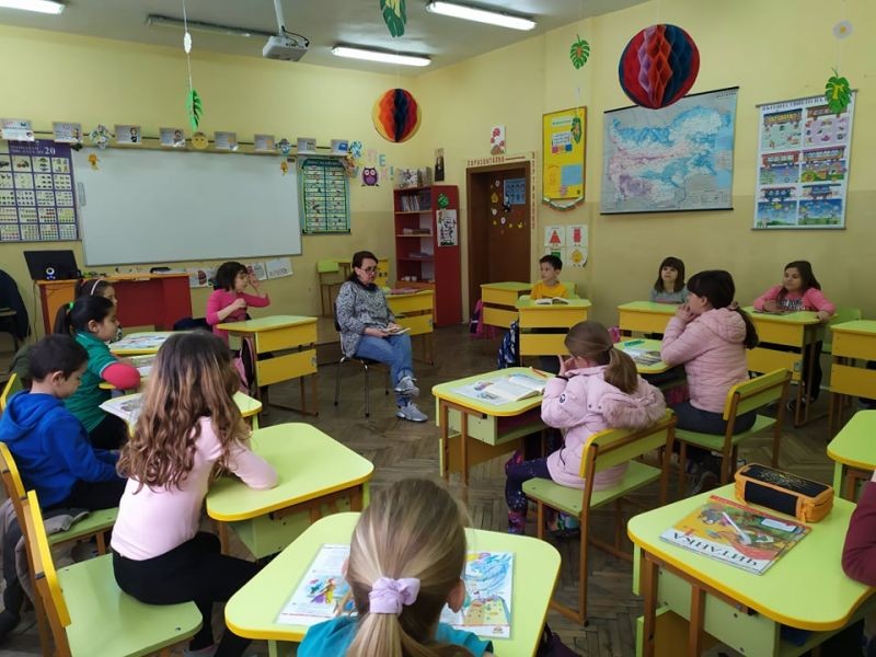 На 20.04.2022 г. учениците от 1"а" клас се включиха в инициативата "Походът на книгите". На гости им беше логопедът на училището г-жа Галя Иванова, за да им прочете своя любима приказка. Малките ученици бяха завладяни от магията на словото, слушаха с интерес и вълнение и задаваха въпроси след това.