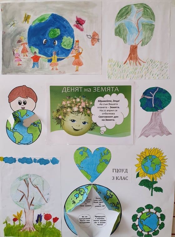 По случай 22 април - Световен ден на Земята, учениците от групата за целодневна организация на учебния ден в 3 клас изработиха табло, с което да отбележат този ден. Малките творци нарисуваха красиви рисунки и събраха правила за опазване на природата и планетата и с гордост ги представиха.