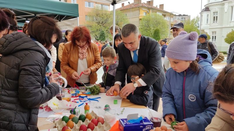 На Велики четвъртък кметът Стефан Радев се включи с деца от Сливен в работилницата за боядисване на яйца