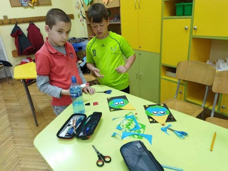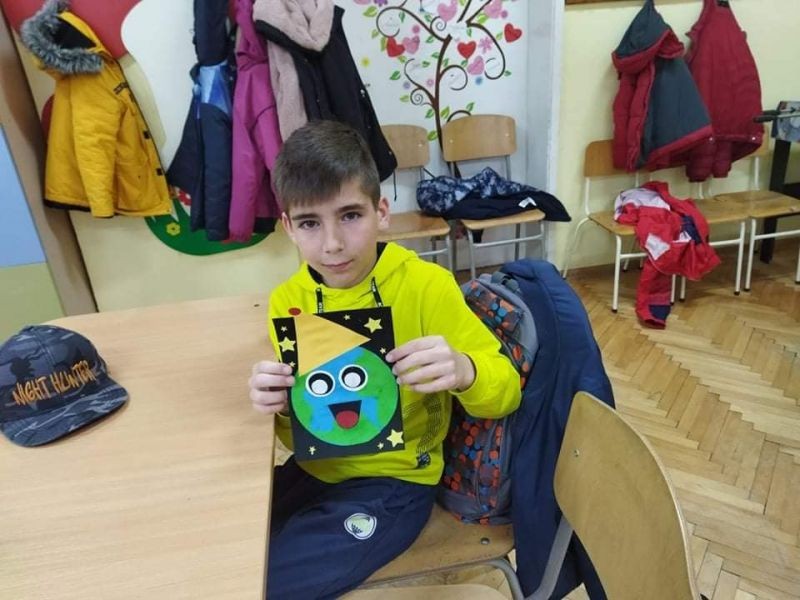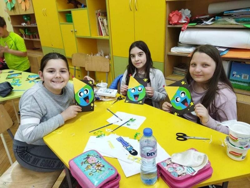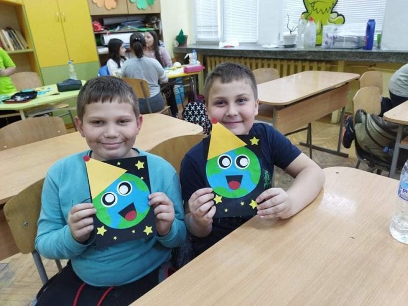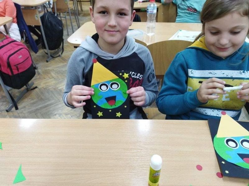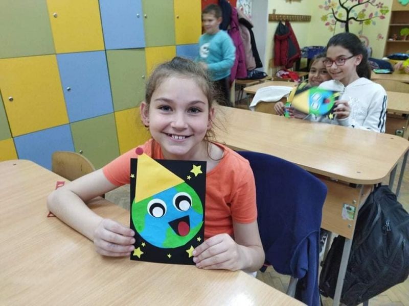 Под надслов "Земята е моят дом и трябва да го пазя!", децата от клуб "Хартиена магия" изработиха картичка по повод 22 април - Международния ден на Земята. Беше проведена дискусия за това какви дейности можем да използваме, за да опазим Земята чиста, да съхраним разнообразието на животни и растения, да пестим енергийните източници и да намалим отпадъците от човешката дейност.
