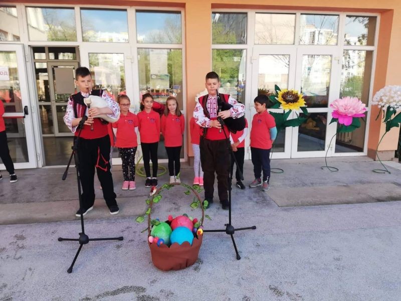 За пореден път българският фолклор развълнува учениците и учителите в Основно училище „Елисавета Багряна“. В голямото междучасие в четвъртък се състоя празнична проява по случай Възкресение Христово. Училищният двор беше огласен от българска музика и народни хора. Изпълнения на гайда, рецитиране на стихотворения и пресъздаване на великденския обичай „Великденска люлка“ бяха част от събитието, което показа, че българското е на почит в учебното заведение, a това не се случва за първи път.