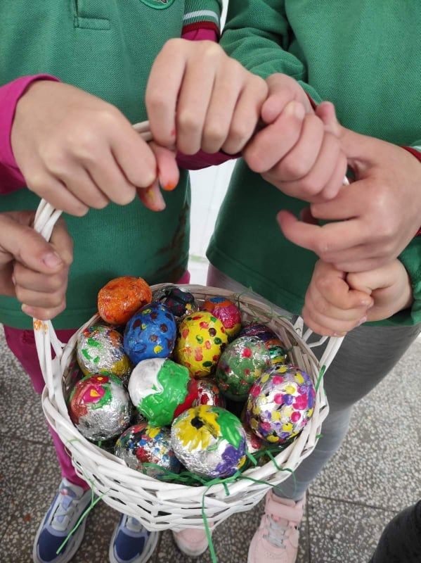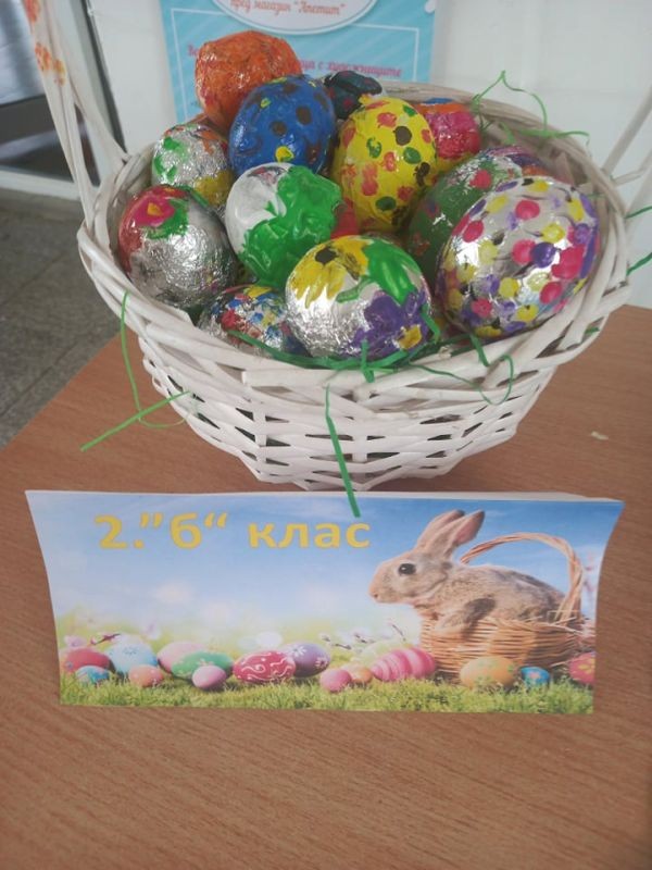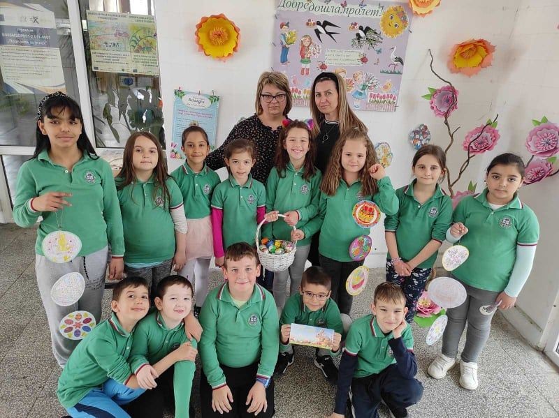 Учениците от 2"а" и 2"б" клас отвориха днес своята работилница за яйца. Преди да започнат боядисването им, те научиха повече за празника и за традициите, свързани с ритуала. След това сръчните им ръчички боядисаха великденски яйца. Заедно със своите учителки г-жа Монева, г-жа Кулева и г-жа Чотова изработиха пъстра великденска украса, с която украсиха фоайето на училището.