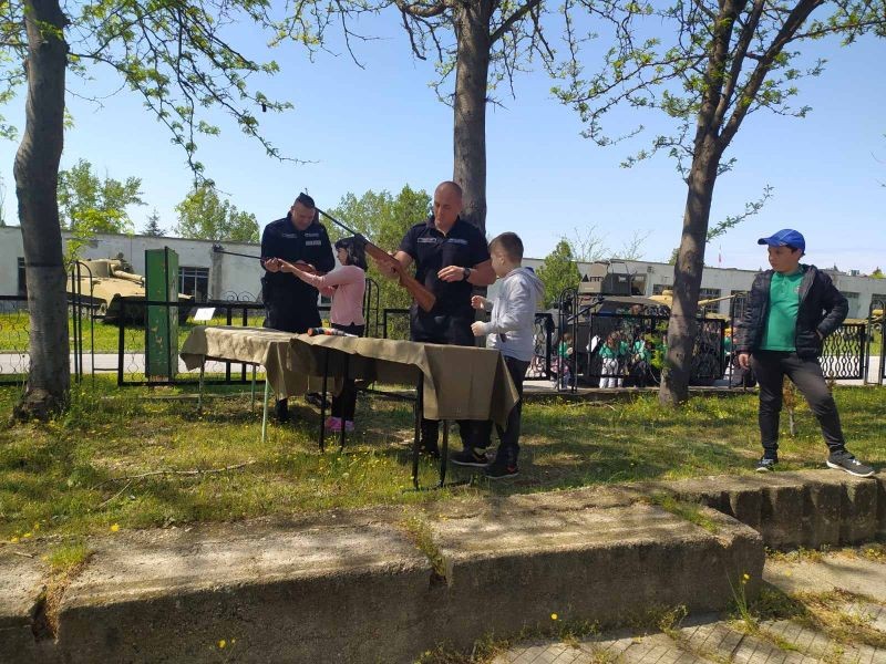 Учениците имаха възможност да разгледат образци на оръжие и военна техника, използвани във формированието и в Българската армия, както и да изслушат историческа беседа за военното формирование. Най-голям интерес предизвика бронираният автомобил „Пясъчна котка“.