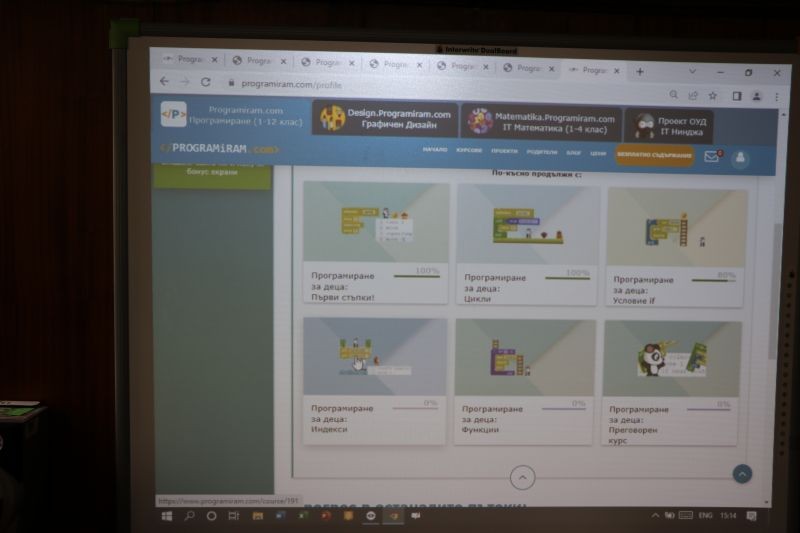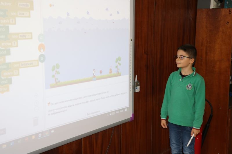 В първия ден присъстващите наблюдаваха открит урок по "Въведение във визуалното програмиране" с ученици от 2. клас. Под ръководството на учителя по информационни технологии Виктор Диндев децата демонстрираха завидни знания и умения в областта на програмирането и дигиталните науки. С помощта на интерактивните игри се изгражда стабилна основа за превръщане на учениците в бъдещи успешни програмисти.