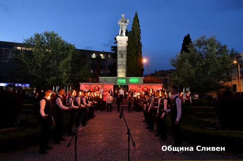 Пищно дръм-шоу от инструментални и танцови изпълнения на група „Вакали“ даде началото на Майски дни на културата „Сливенски огньове“. Символният огън беше запален от кмета Стефан Радев и част от състава на група „Вакали“. От началото до края на церемонията ученици от сливенски гимназии оформиха караул с факли около паметника на Хаджията.