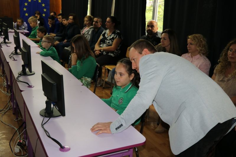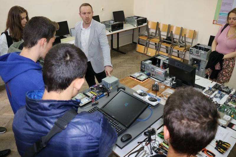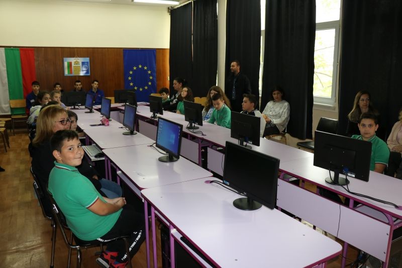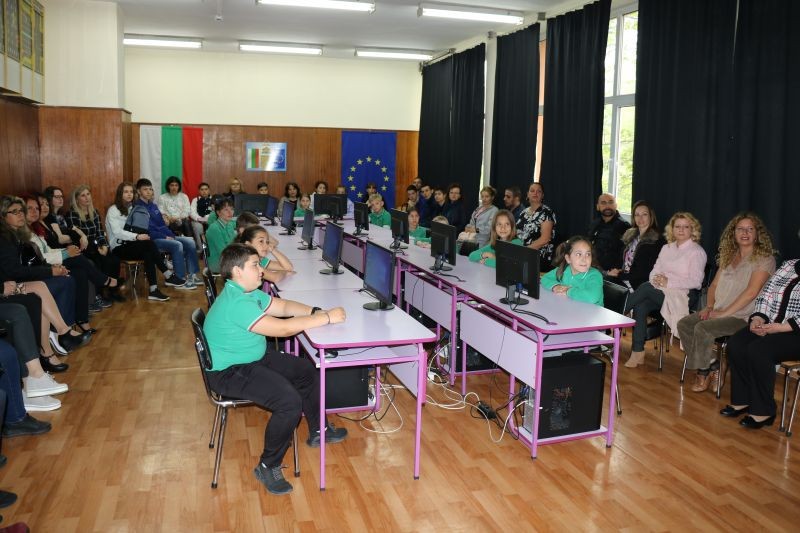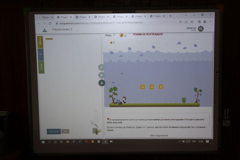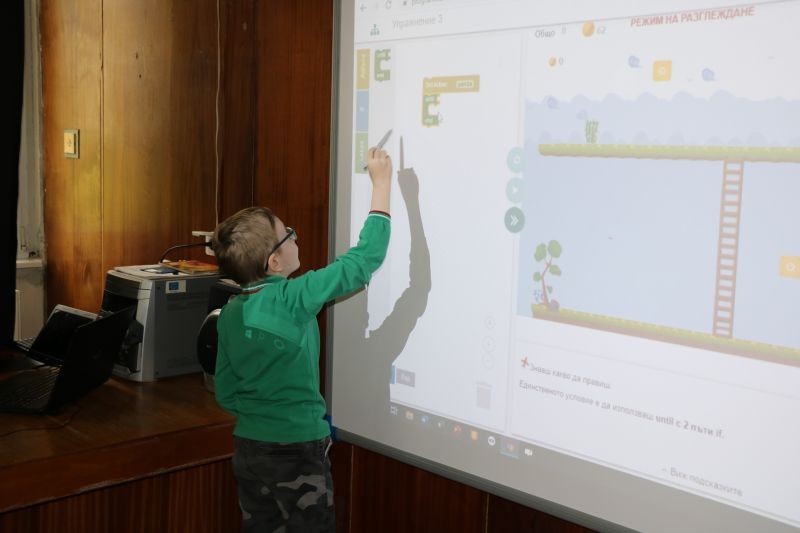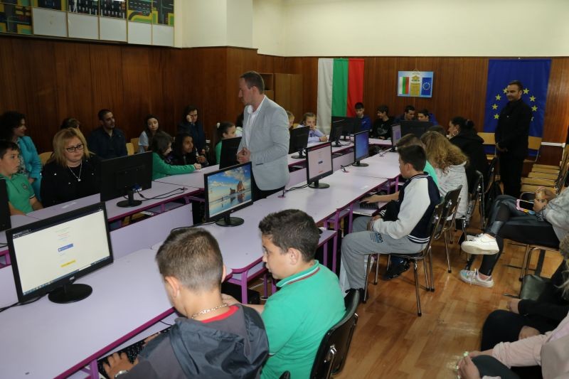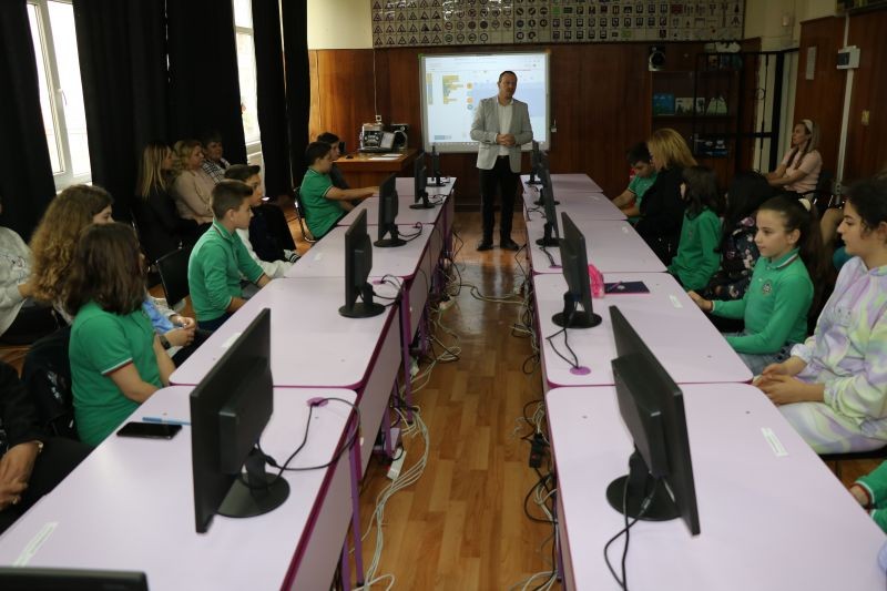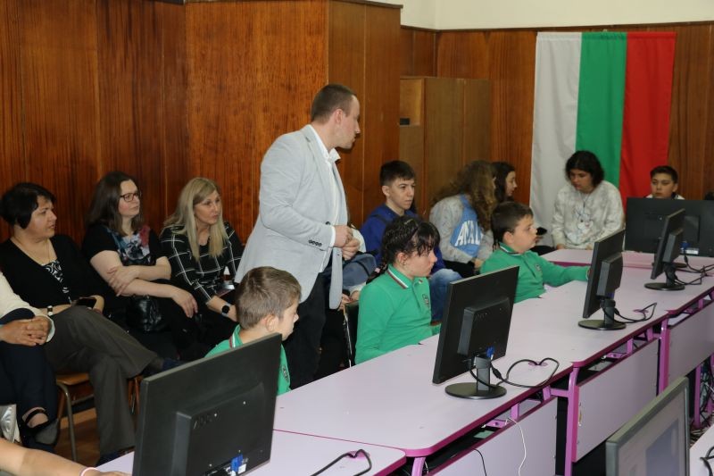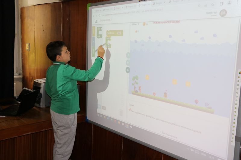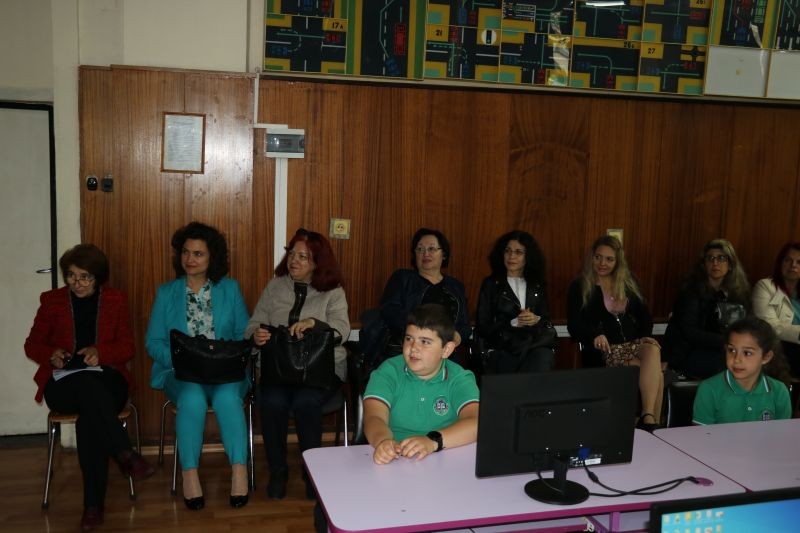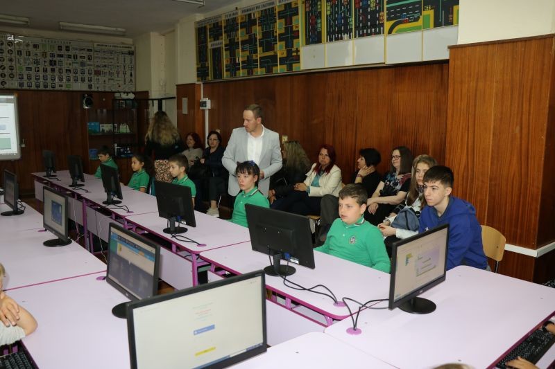 В открития урок учениците от 3. клас със своя учител Димитър Желев по "Визуално програмиране" демонстрираха завидни знания и умения по програмиране.