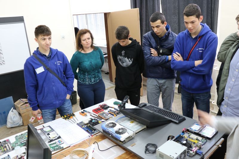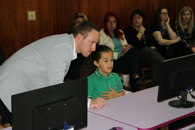 В открития урок учениците от 3. клас със своя учител Димитър Желев по "Визуално програмиране" демонстрираха завидни знания и умения по програмиране.