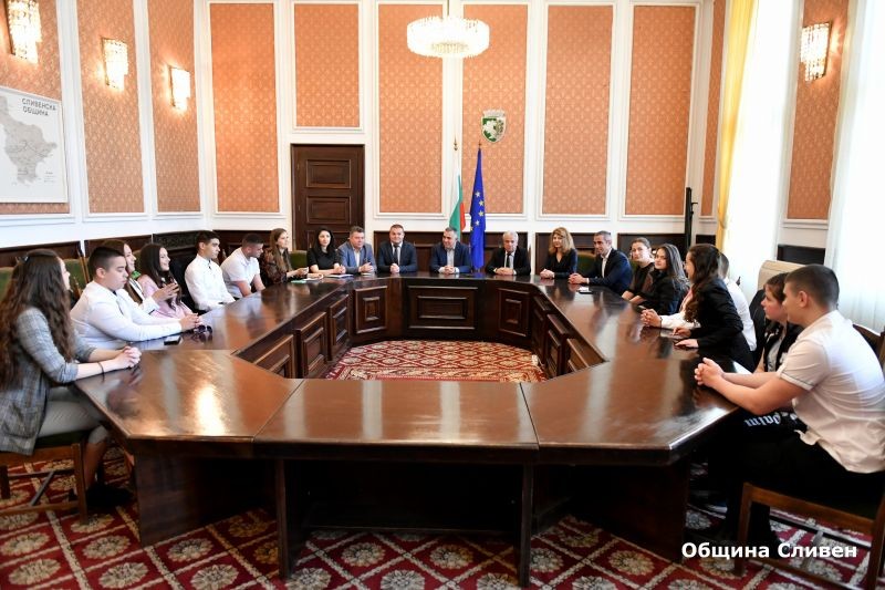 Представители от Младежки дом – Сливен днес гостуват в Общината. Поводът е традиционната инициатива „Управляваме заедно“, посветена на 9 май - Ден на Европа. Те „поемат“ за един ден управлението от кмета Стефан Радев, председателя на Общински съвет-Сливен Димитър Митев, ресорните зам.-кметове Румен Иванов, Стоян Марков, Камен Костов, Пепа Чиликова и секретаря на общината Валя Радева. В рамките на опознавателната среща кметът Стефан Радев поздрави гостите за инициативата, която отново бе възобновена след прекъсване заради ковид пандемията.