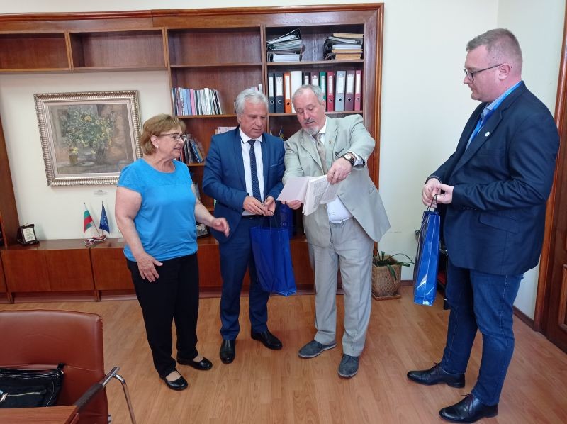 Председателят на местния парламент в Сливен Димитър Митев се срещна с общинския съветник Тамаш Хорват от побратимения на Сливен унгарски град Печ. Чуждестранният гост е председател на комисията по култура към Общински съвет и на Културен център в Печ. Той е и специален гост на тазгодишното издание на Националния фестивал на детската книга, който в момент се провежда в Сливен. В срещата участваха общинските съветници Веселина Тонева, която е и един от заместниците на Митев, Соня Келеведжиева – председател на УС на Общински фонд „Култура“ в Сливен, Лидия Димитрова - председател на Комисията по образование, наука, култура, вероизповедания към общинския съвет. Хорват бе придружен от директора на местната библиотека в Печ - Тамаш Мислер и Павлина Бонева от дружеството на българското малцинство в Печ.