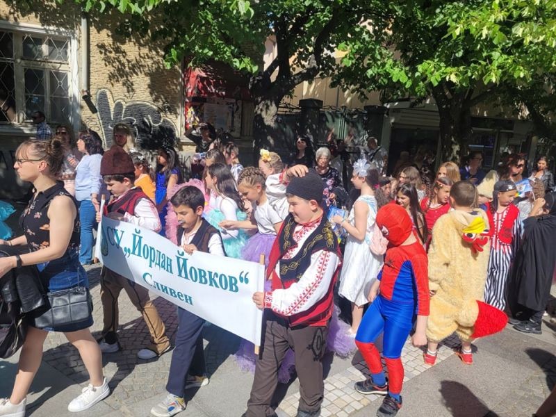 Ученици от СУ "Йордан Йовков" - Сливен се включиха в карнавалното шествие, посветено на XXIV Национален фестивал на детската книга.