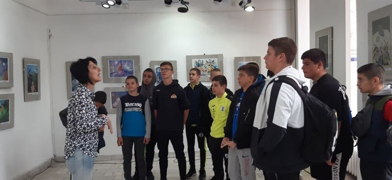 Седмокласниците посетиха изложбата от илюстрациите на студенския конкурс "Из приказния свят на Елин Пелин", посветена на 145 годишнината от рождението му.