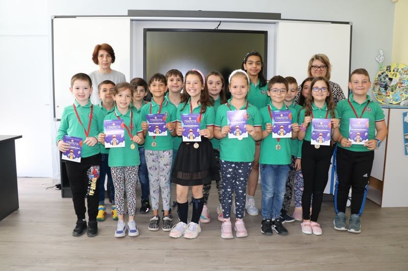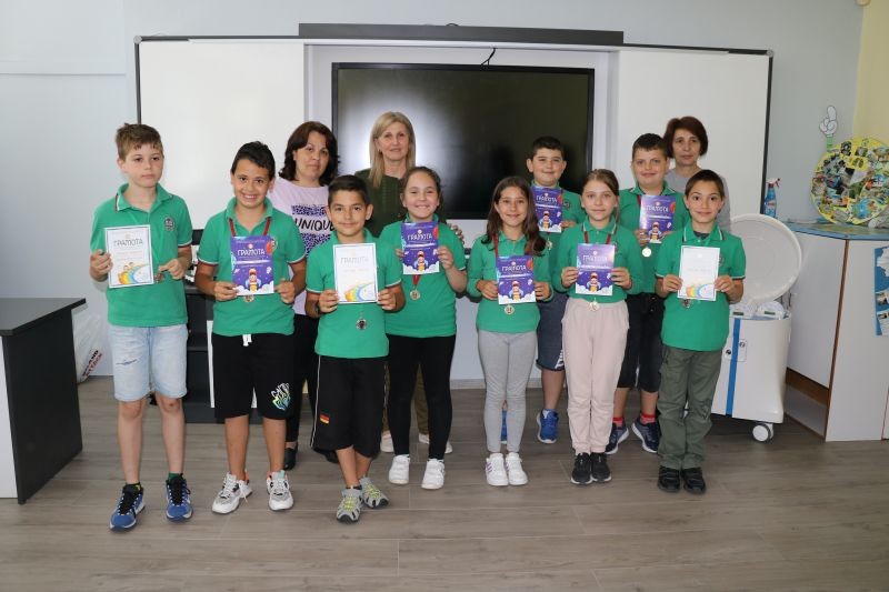 Учениците от начален етап на СУ "Йордан Йовков" - Сливен получиха своите златни и сребърни медали и грамоти за достойното си представяне във финалното състезание, организирано от Сдружението на българските начални учители.