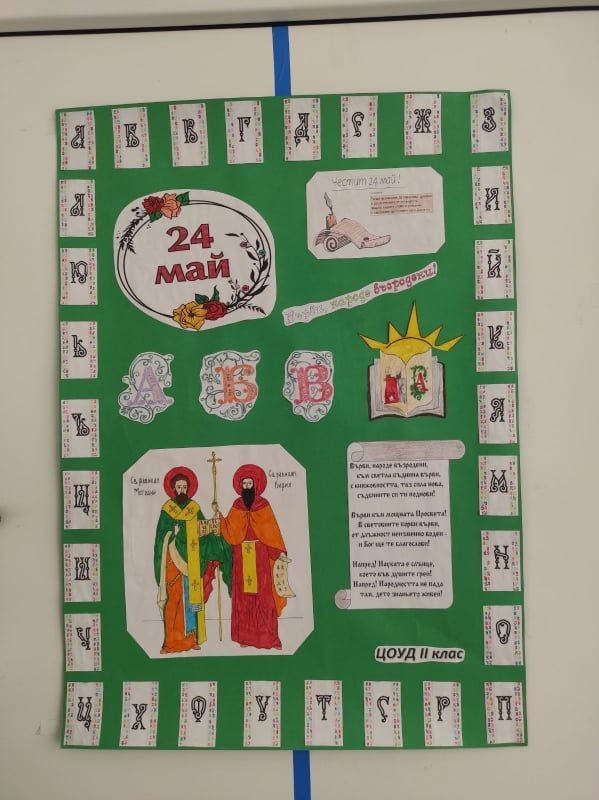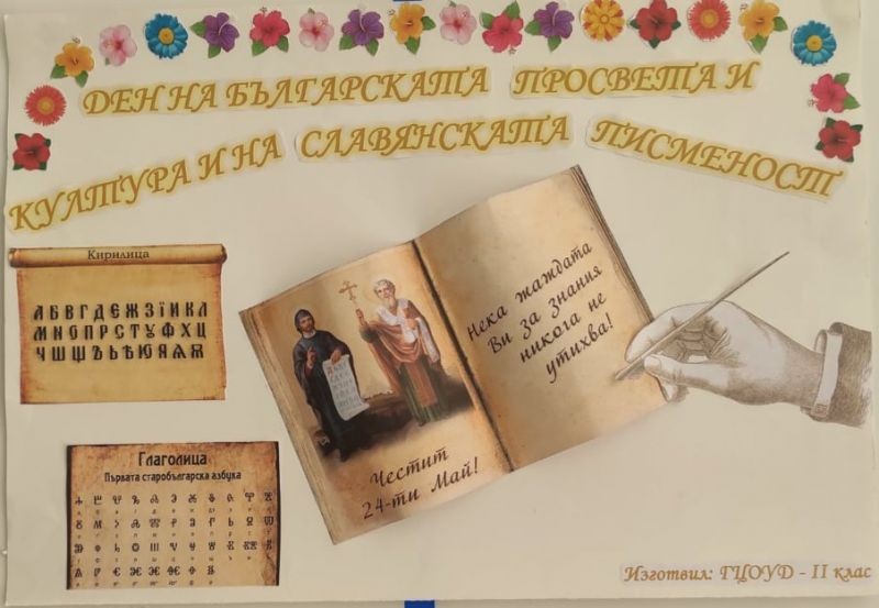 По случай 24 май - Ден на Светите братя Кирил и Методий, на българската азбука, просвета и култура и на славянската книжовност, учениците от ГЦОУД - 2. клас подготвиха рисунки и изготвиха табла, които представят делото на Светите братя Кирил и Методий.