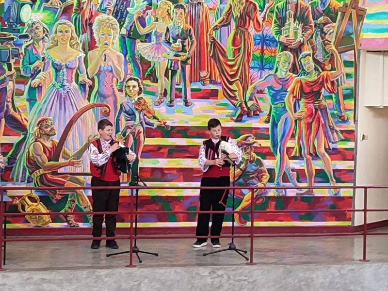 Богата беше програмата на празничния концерт. Тя включваше стихотворения, изпълнения на гайда, балет, индивидуални музикални изпълнения, спортни и народни танци.