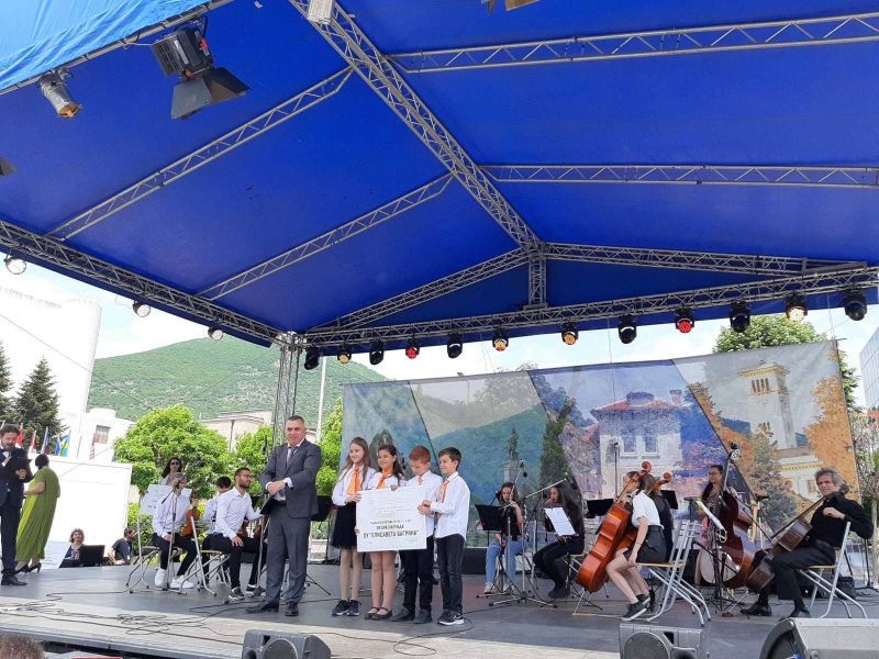 На откритата сцена на площад „Хаджи Димитър” кметът Стефан Радев награди ученици, носители на награди от национални и международни състезания и конкурси.