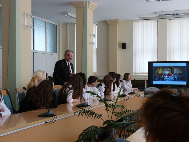 В учебният материал, по предмета Право, на деветокласниците със специалност „Банково дело” и „Митническа и данъчна администрация” има темата „Местните органи на държавната власт и управление”. Днес с открития урок по темата, областният управител върна назад във времето учениците и техните учители. Той направи преглед на интелектуалната мощ на човечеството от стари до нови времена Демокрацията не е ново понятие.