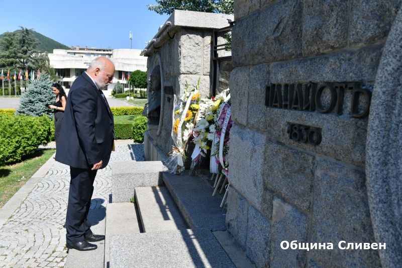 Тържествената церемония продължи с поднасяне на венци и цветя на признателност пред паметника на Хаджи Димитър и сливенските възрожденци. В него се включиха кметът Стефан Радев, директорът на ОДМВР-Сливен старши комисар Димитър Величков, председателят на Общински съвет-Сливен Димитър Митев, областният управител Веселин Вълчев, директорът на Районна дирекция „Пожарна безопасност и защита на населението“-Сливен – комисар Владимир Демирев, директори и представители на институции и висши учебни заведения в града, граждани и др.