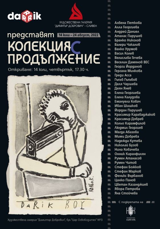 На 14 юли, в 17.30 часа, в Художествена галерия „Димитър Добрович”, бул. „Цар Освободител“ 13, се открива изложбата „Колекция с продължение” на Дарик радио.