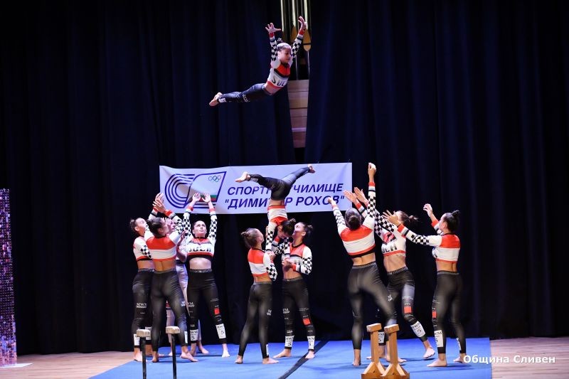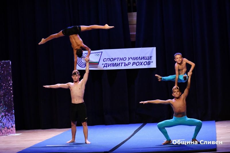 На сцената на зала „Сливен“ своя талант и умения демонстрираха възпитаниците по акробатика, борба, футбол и др. Публиката забавлява и илюзионистът Арсен.
