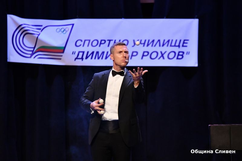 На сцената на зала „Сливен“ своя талант и умения демонстрираха възпитаниците по акробатика, борба, футбол и др. Публиката забавлява и илюзионистът Арсен.