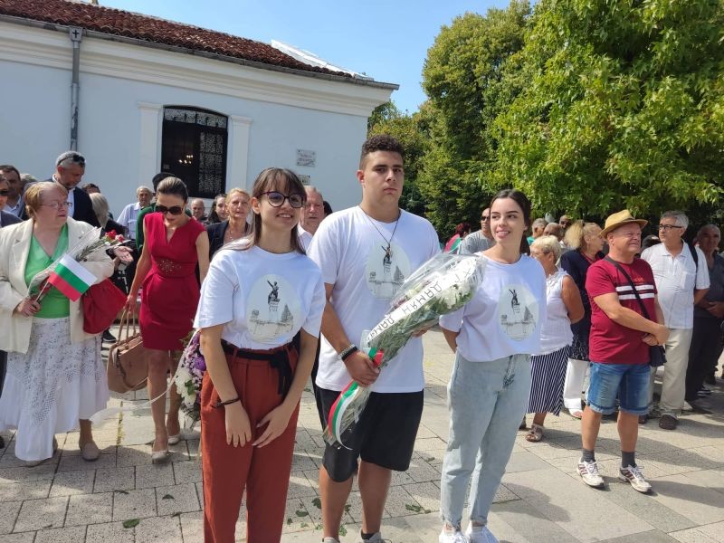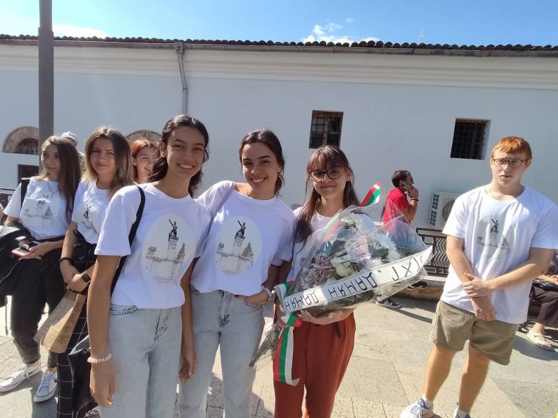 В деня на 137 – годишнината от Съединението, ученици от клуб „Памет“ към Хуманитарна гимназия, учители и ръководство, поднесохме цветя на признателност пред паметника на Хаджи Димитър.