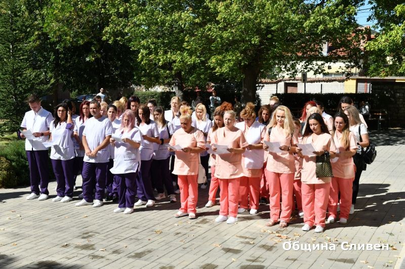 43 са първокурсниците тази година. 17 от тях ще се обучават по специалността „Акушерка“, а 26 – за „Медицинска сестра“. Те положиха традиционната клетва на първокурсника.