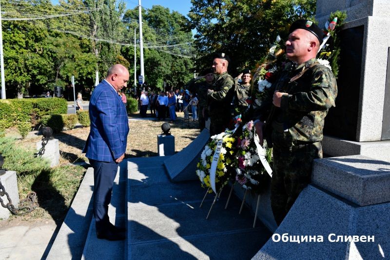 Кметът Стефан Радев поднесе венец пред паметника, а от трибуната на Военния клуб приветства организаторите за инициативата и връчи почетен знак – плакет за принос в развитието на обществения живот на Сливен и по повод 110 години Трета българска армия на генерал-полковник Цветан Тотомиров. Той бе командир на Трета армия за периода 1991-1993 година.