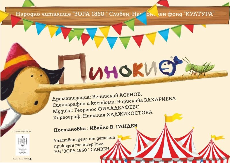 Постановката „Пинокио“ е реализирана с финансовата подкрепа на Национален фонд „Култура“ към Министерство на културата. Вход свободен.