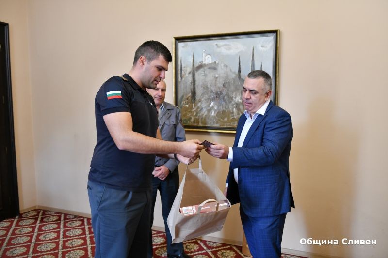 На среща днес кметът Стефан Радев беше запознат от директора на Регионална дирекция „Пожарна безопасност и защита на населението“ комисар Владимир Демирев с модификацията на машината. Бяха обсъдени и впечатленията от престоя на сливенските огнеборци в немската противопожарна служба. От свое име и от името на колегите си, комисар Демирев изказа благодарност към Община Сливен, която е финансирала транспортирането на автомобила до България. От името на своя колега и началник на пожарната в Кьолн Ралф Ласман, той връчи на кмета Радев емблема на немската пожарна и тематични подаръци. Сливенският градоначалник благодари за жеста и вниманието, като подчерта, че новата придобивка ще е в помощ на жителите на общината и служителите на пожарната. Той изпрати благодарствен адрес за дарението до противопожарната служба в Кьолн.