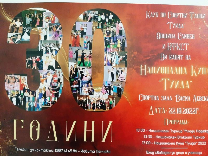 На 22 октомври Сливен е домакин на Национална Купа по спортни танци, организирана от Община Сливен, Българската федерация на клубовете по спортни танци /БФКСТ/ и клуб по спортни танци „Туида“ – град Сливен.
