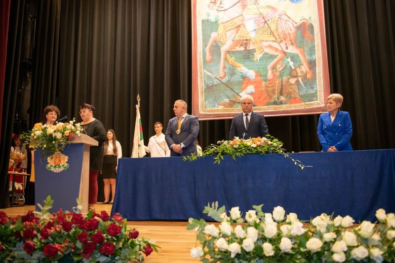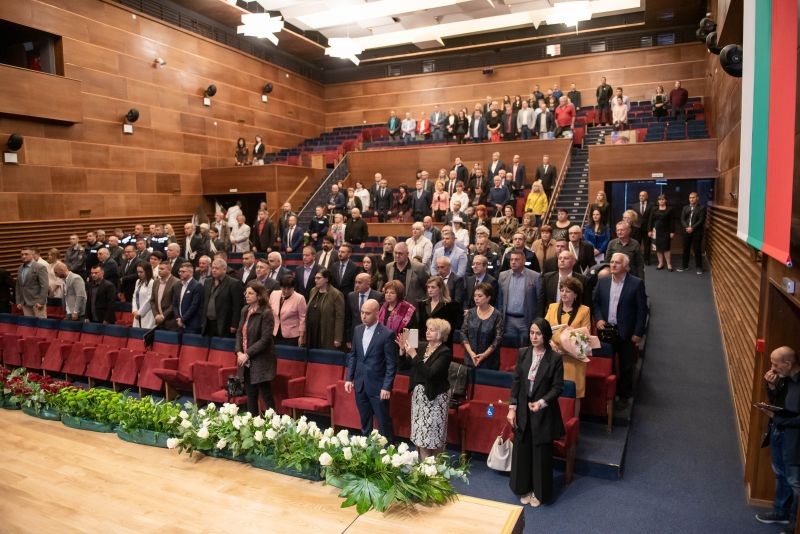 С внасяне на знамето на Общината в зала „Сливен“ днес започна 39-ата тържествена сесия на местния парламент. Тя е посветена на празника на Сливен – Димитровден.