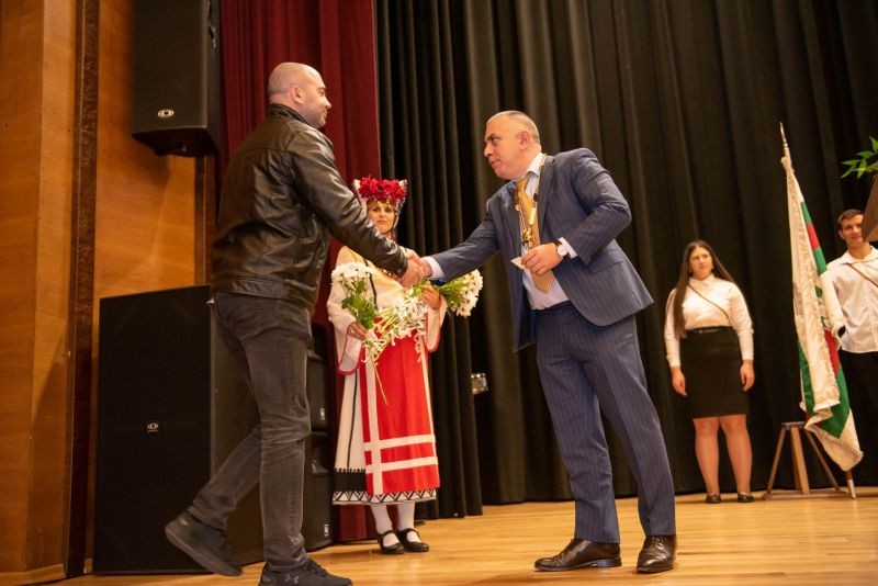 По повод Димитровден приветствие от сцената на залата отправи и кметът Стефан Радев.