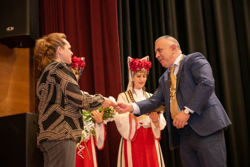 По повод Димитровден приветствие от сцената на залата отправи и кметът Стефан Радев.