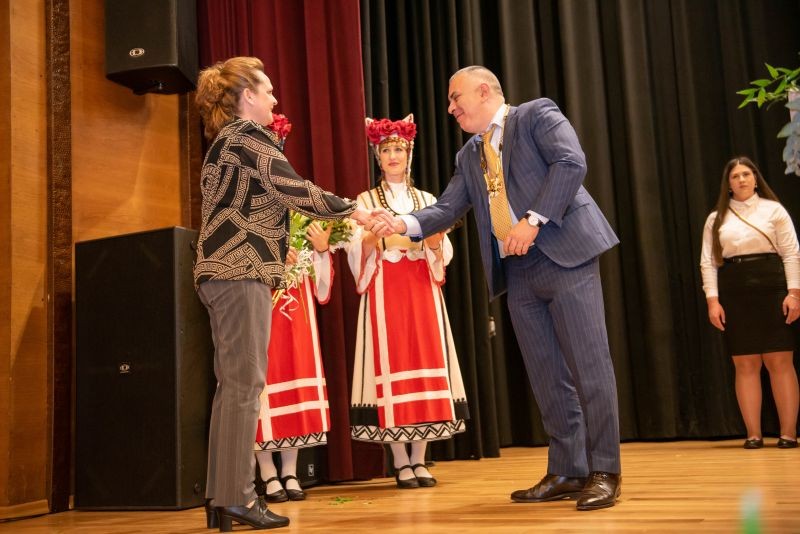 По повод Димитровден приветствие от сцената на залата отправи и кметът Стефан Радев.