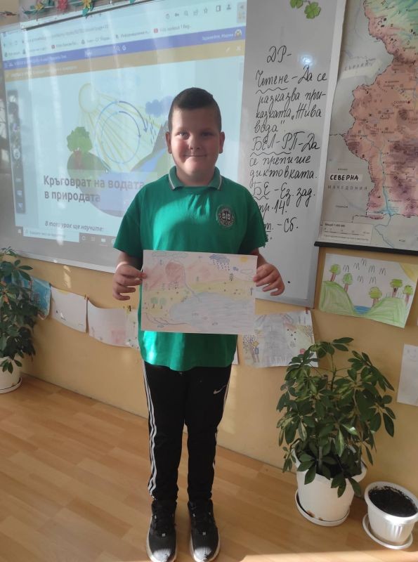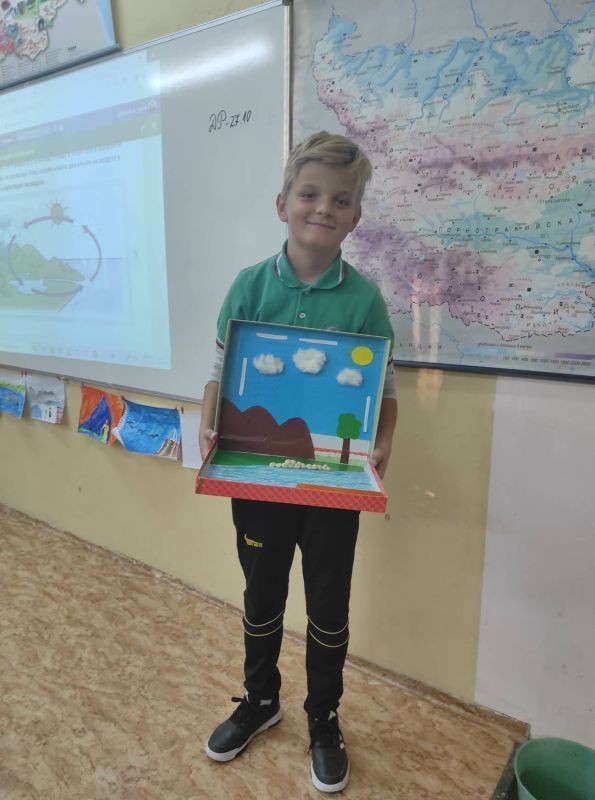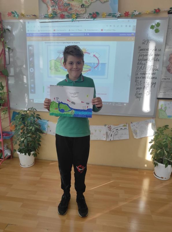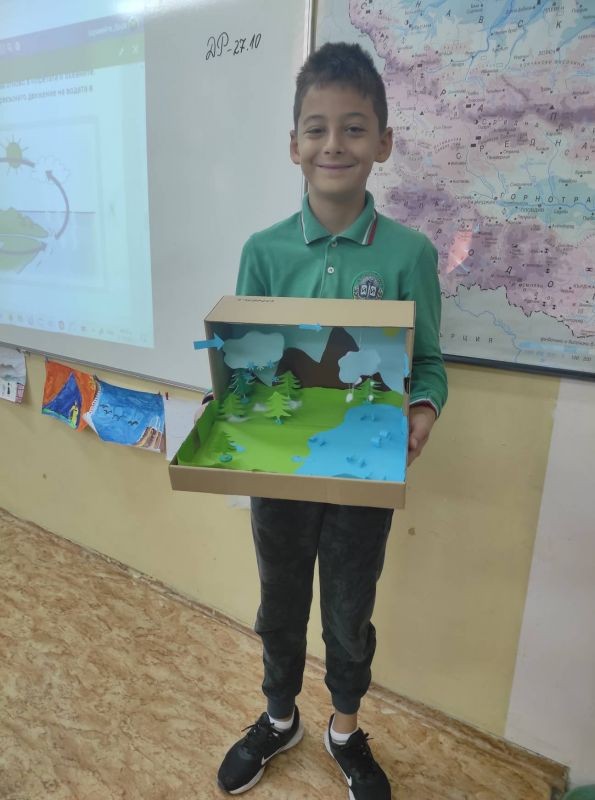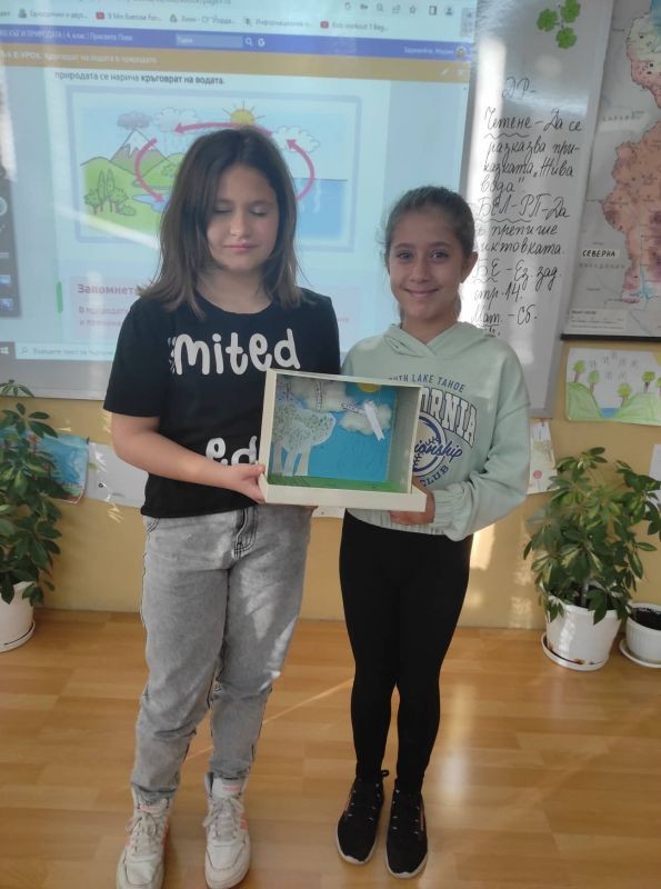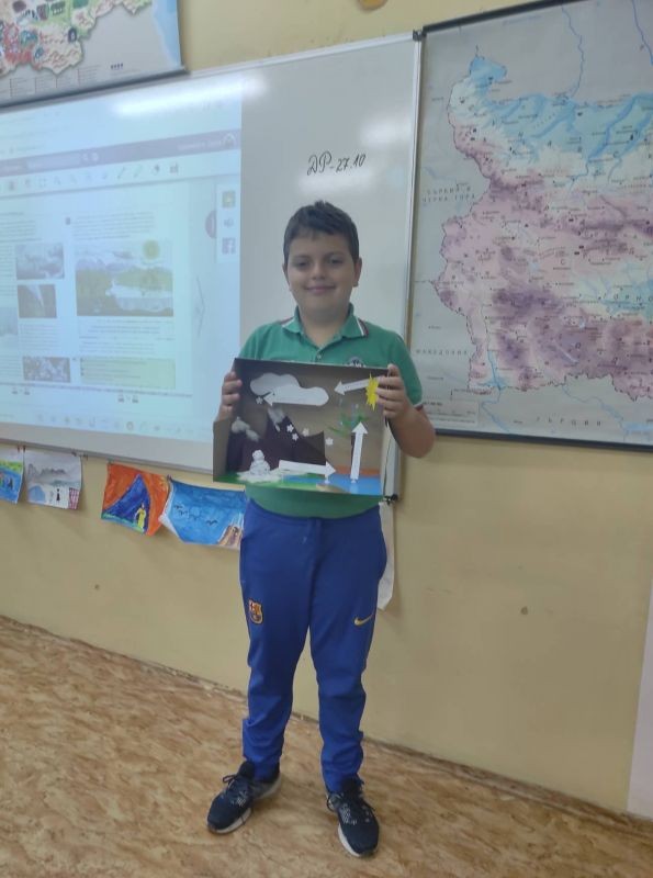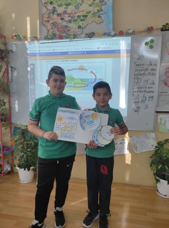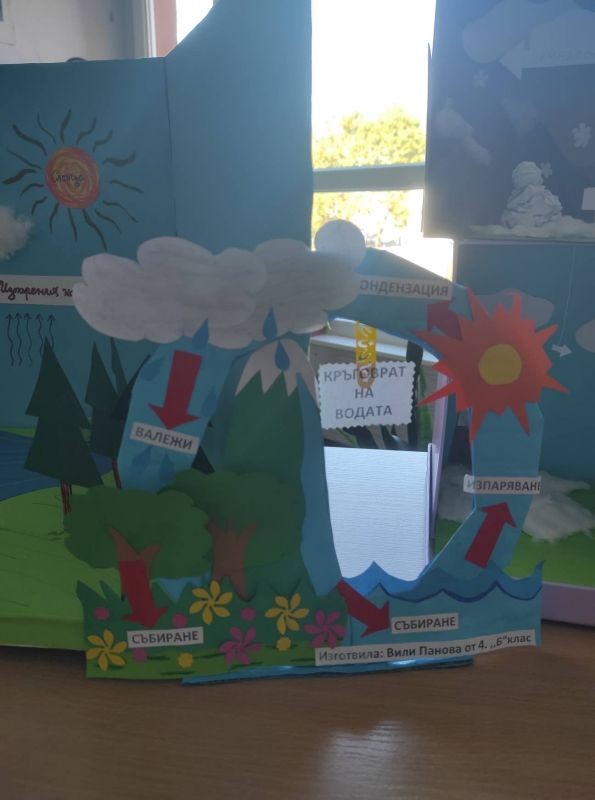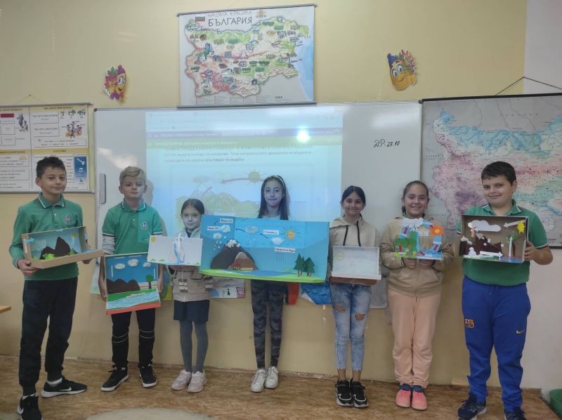 Това заявиха четвъртокласниците за кръговрата на водата в час по Човекът и природата. Чрез своите макети и рисунки обясниха непрекъснатото движение на водата в природата и преминаването ѝ от едно състояние в друго.
