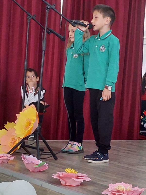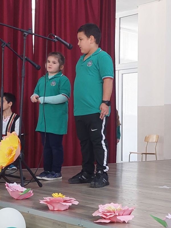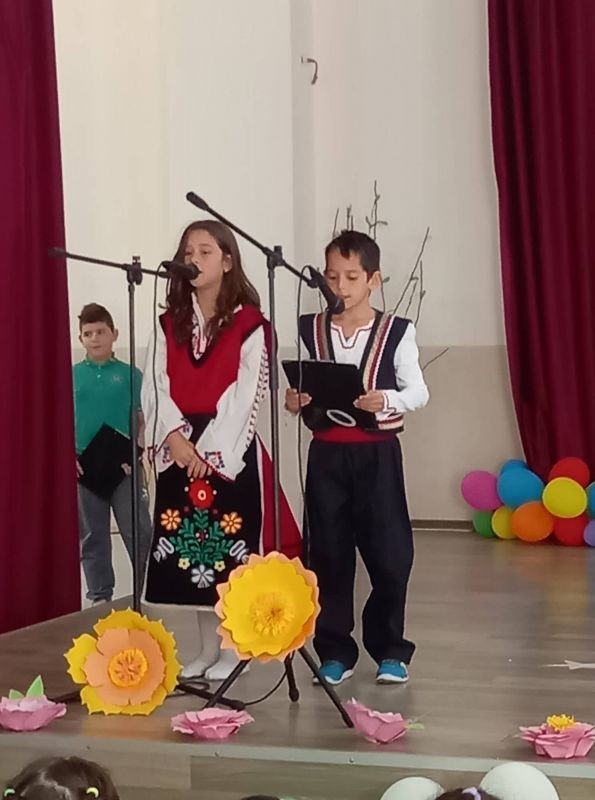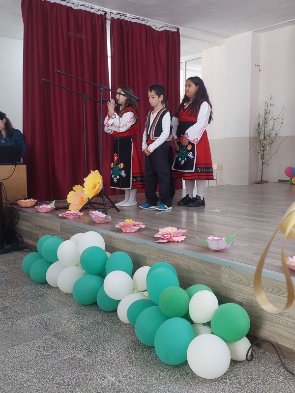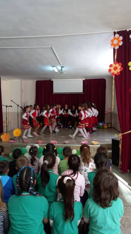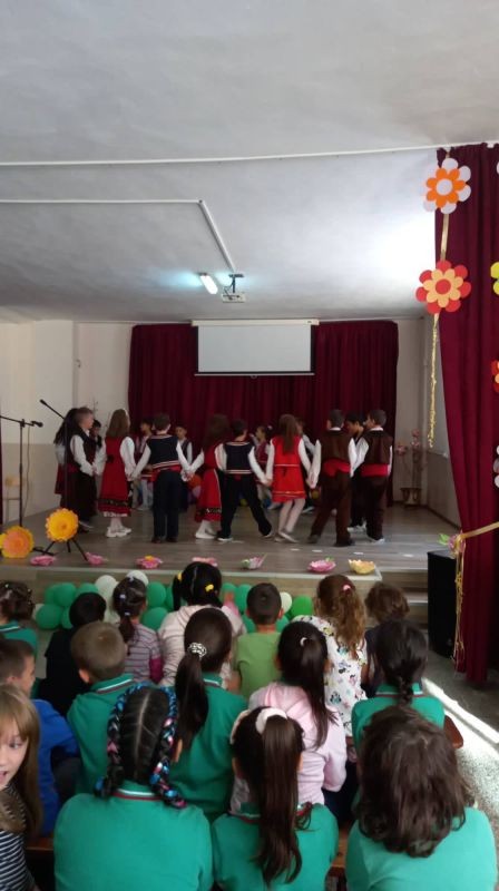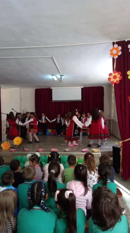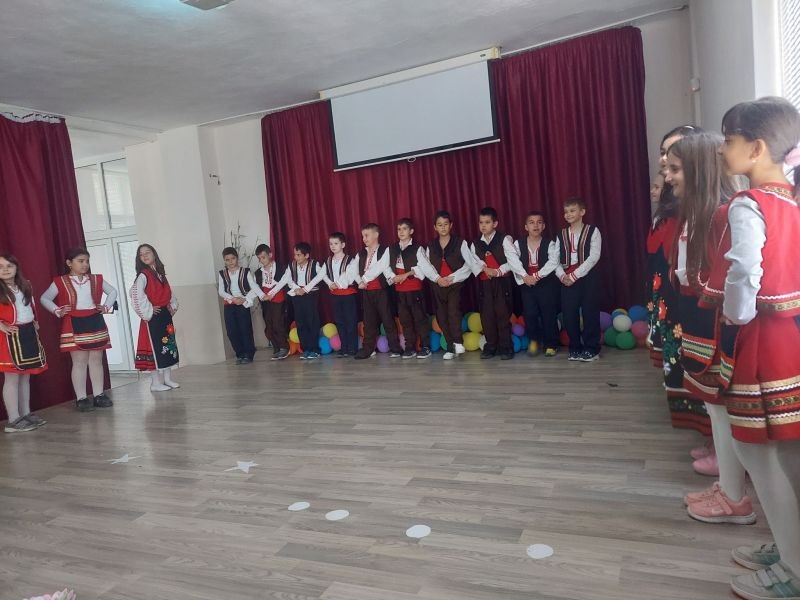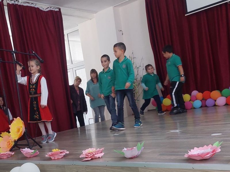 С разнообразна програма от стихотворения, песни и танци учениците от 1. до 4. клас поставиха началото на седмицата, посветена на патронния празник на училището.