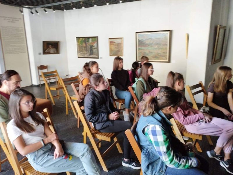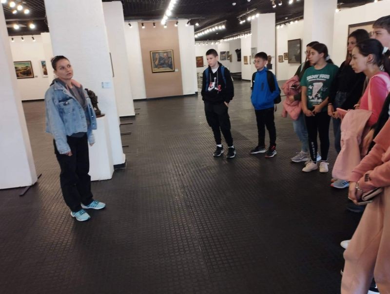 На 02.11.22г. учениците от 7."в" клас и техните учители - Румен Петров и Веселина Мухтарова, посетиха изложбена зала "Сирак Скитник". Запознаха се с видовете и жанровете в изобразителното изкуство, както и с картините на сливенските художници Сирак Скитник и Иван Милев. Те се насладиха на багрите и техниките за рисуване, както и на особеностите при създаване на произведения в отделните жанрове.