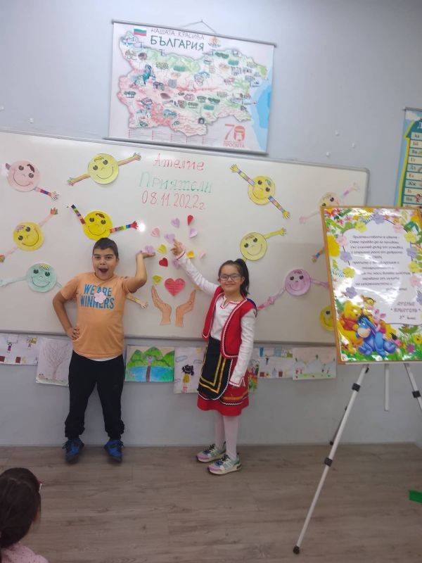 "Приятелството е цвете - само трябва да го поливаме със слънчев дъжд от усмивки, с утринна роса от доброта и обич, пропита с великодушие и толерантност и то ще ни носи винаги щастие, огрявано от лъчите на искреността и доверието!" - това заявиха учениците от 3 "а" в своето ателие "Приятелство".