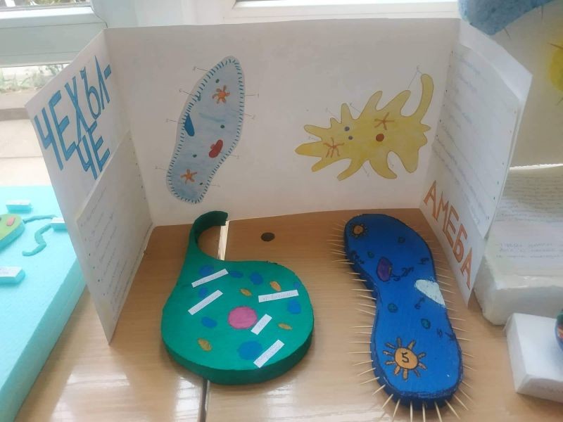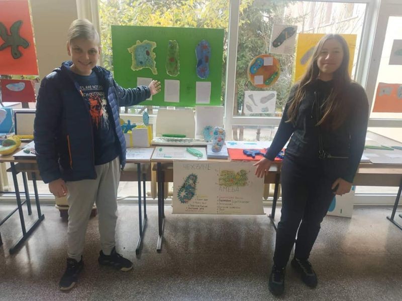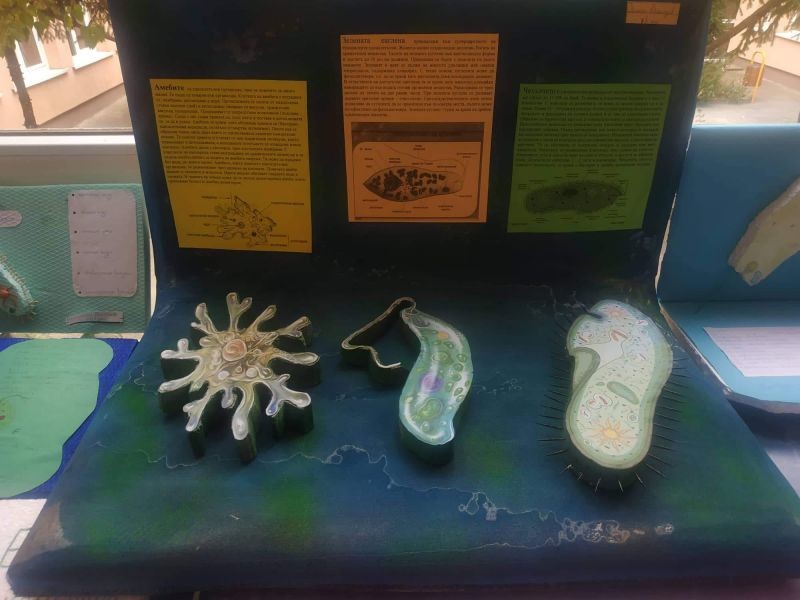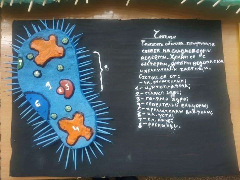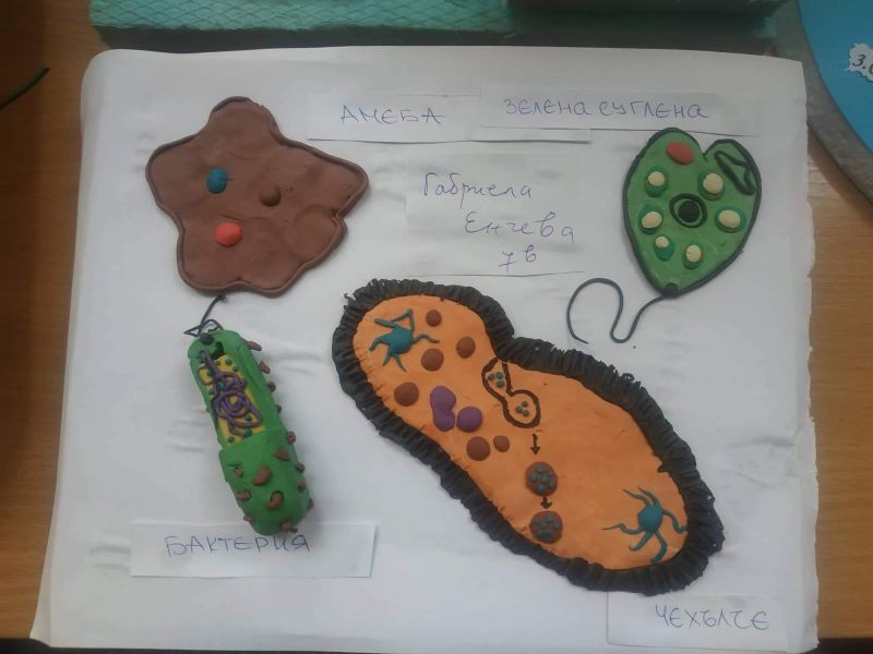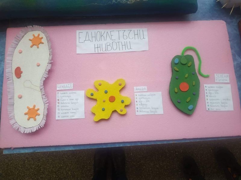 Какво е това зелена еуглена? С какво се движи чехълчето? Как се храни амебата? На тези въпроси вече могат да отговорят седмокласниците в нашето училище. Те се трудиха неуморно, за да направят десетките макети на тези едноклетъчни организми. В същото време те придобиха знания за тяхното устройство и начин на живот. Децата проявиха креативност и изобретателност при изготвянето на макетите. Работиха с желание и интерес, а накрая се получиха и отлични резултати.