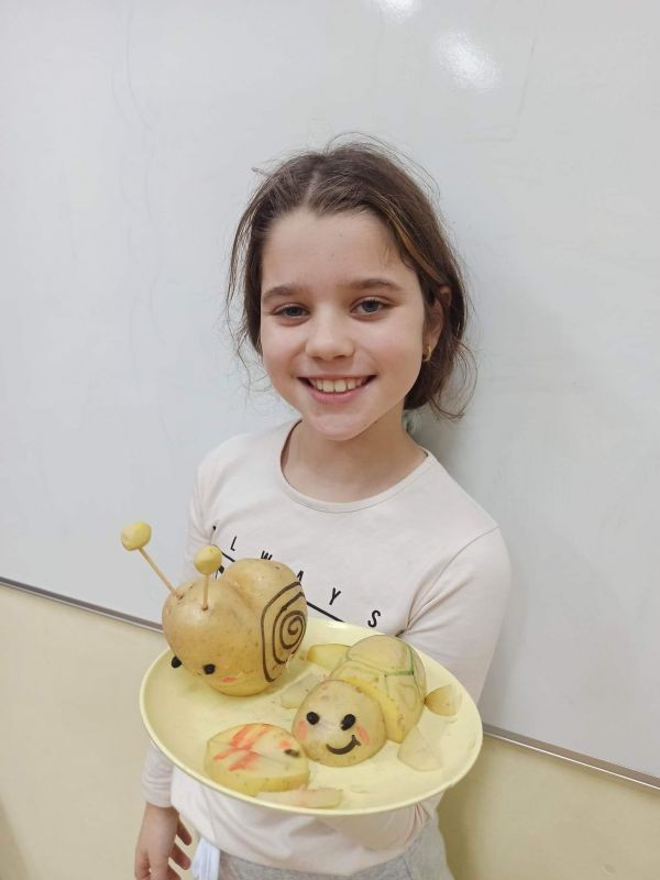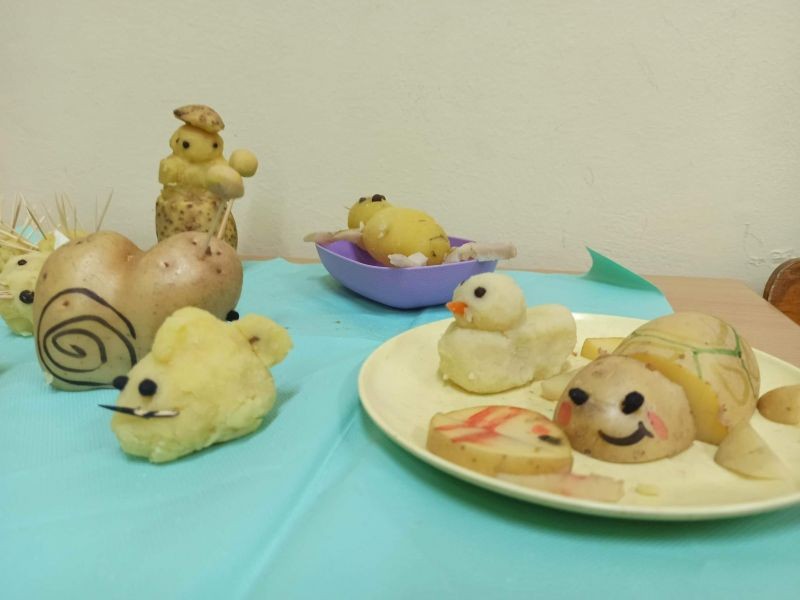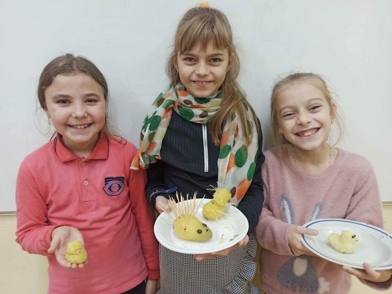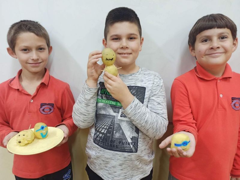 Третокласниците се забавляваха, като изработваха фигурки от картофи. По този начин усетиха домашния уют.