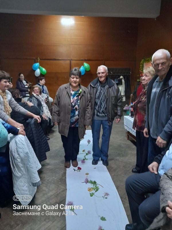 Юбилярите получиха подаръци, а гостите бяха запознати с техните семейства. Програмата продължи с изпълнение на женската фолклорна група към читалището.