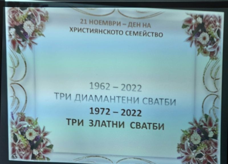 „Днешният ден е особено специален за вас и вашите близки, триумф на добрите човешки взаимоотношения, на съпружеското разбирателство и топлотата на семейното огнище. Всеки ден, през тези 50 и 60 години, сте преодолявали трудности, споделяли сте радост и тъга, делили сте хляба и солта, избърсвали сте сълзите си и сте търсили щастието. Нека взаимната ви подкрепа и обич се предават на поколенията след вас, които да наследяват търпението и уважението един към друг“, се казва в адреса от кмета Стефан Радев.