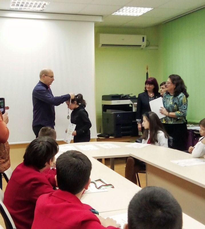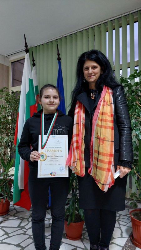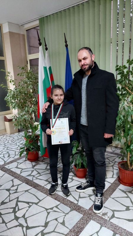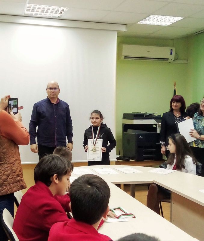 На провелото се на 1.11.2022 г. XXXI-во математическо състезание "Черноризец Храбър", Стефания Андонова от VII А клас спечели златен медал, като се отличи сред конкуренцията си в своята възрастова група с максимален брой точки. На 25.11.22 г. /петък/ в сградата на РУО-Сливен се състоя награждаването на учстниците, където присъстваха учители, родители и експерти. Поздравяваме Стефи за винаги отличните резултати и ѝ пожелаваме успех на предстоящите предизвикателства!