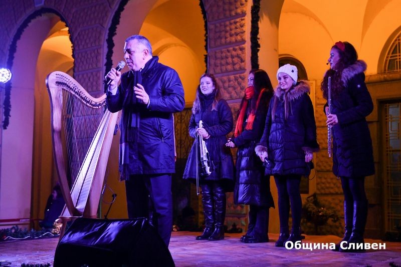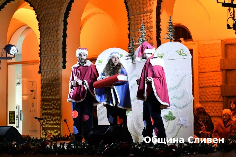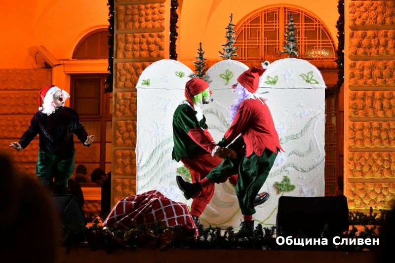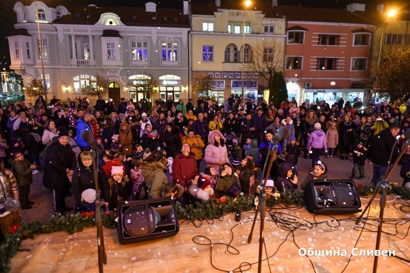Коледната елха в Сливен грейна навръх Никулден с куклено шествие, концерт и илюминации. Кметът Стефан Радев, децата и техните родители, които бяха дошли на общоградския празник пред сградата на Общината, извършиха обратното броене до запалването на светлините.