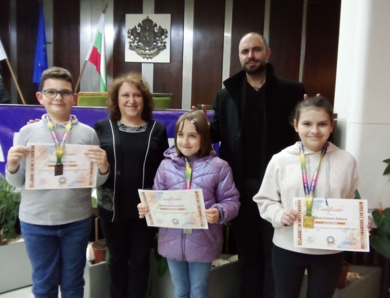 Нови медали от есенния кръг на 10-тото математическото състезание "Математика без граници". Стефания Андонова от VIIА клас спечели златен медал с максимален брой точки в своята категория, Николета Колева от IIIА клас се пребори за среброто, а нейният съученик Стилиан Тодоров - за бронза в своята категория. На церемония в зала "Май" медалистите бяха лично наградени от г-н Христо Котов – директор ЦПЛР – ДК – Сливен. Други трима ученици от II и IV клас получиха грамоти за отлично предстваяне в състезанието, връчени от директора на ОУ "Панайот Хитов", г-н Мартин Маринов.