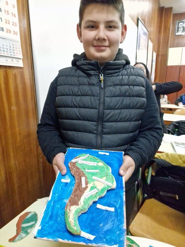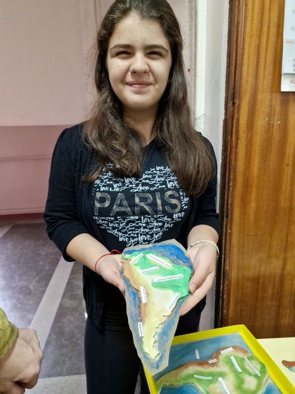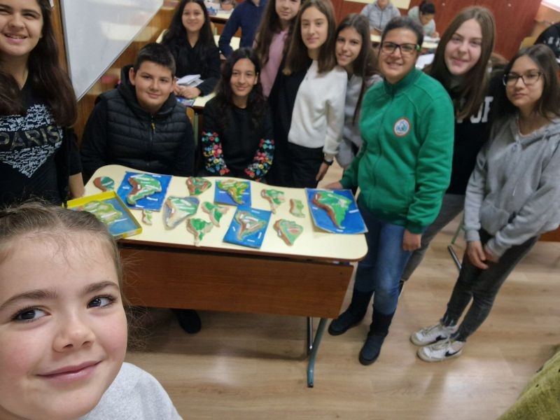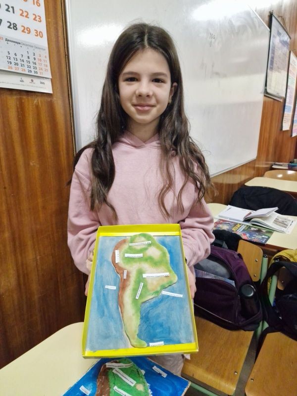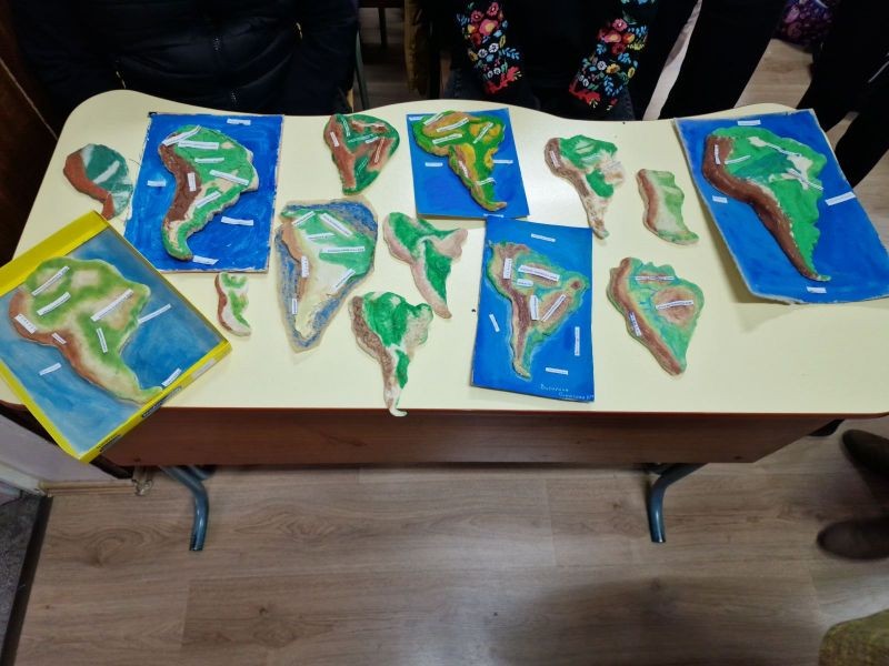 Учениците от VIA клас представиха своите проекти, подготвени за обобщаващия урок по География и икономика за континента Южна Америка. Те изработиха макети на континента от тесто, след което го оцветиха и нанесоха едни от най-важните и емблематични гографски обекти, които познават.