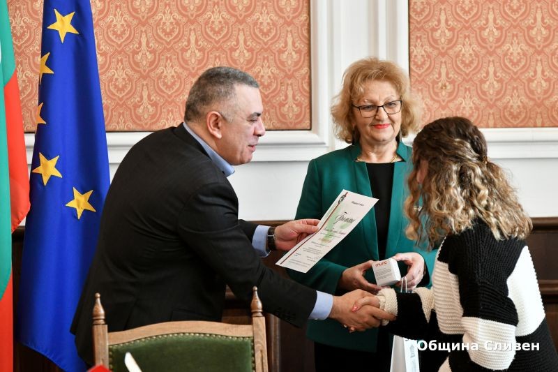 Грамоти в знак на благодарност кметът връчи на преподавателите, подготвили учениците от трите гимназии, които се включиха в конкурса - Татяна Душанова /ПГИ/, Гергана Донева /СУ/, Антоанета Динчева /ПХГ/. Грамоти от името на кмета бяха адресирани и до директорите на трите училища.