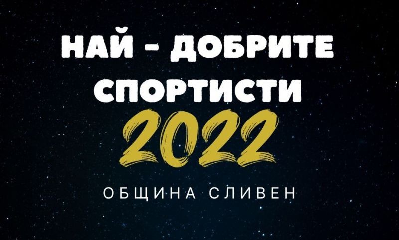 Община Сливен има удоволствието да ви покани на церемонията по връчване на наградите на Община Сливен на 10-те най-добри спортисти, най-добър треньор, най-добър отбор от колективните спортове, най-добър спортист с увреждания и „Бъдеща звезда“ на Община Сливен за 2022 г. Тържественото събитие ще се проведе на 22 декември-четвъртък,от 18 ч. в зала „Сливен“.