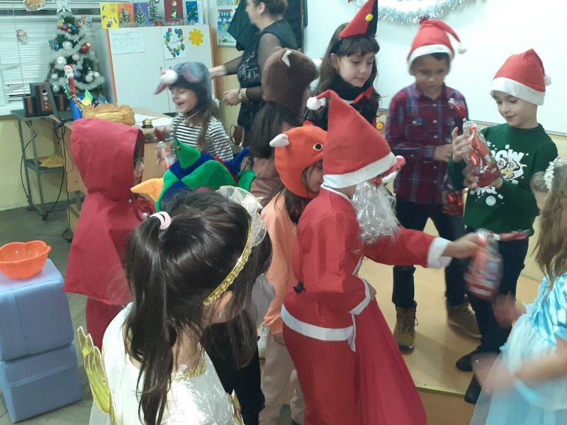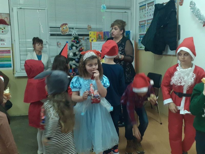 Представиха пред своите родители драматизацията „Дядовата ръкавичка“. Превъплътени в образите на приказни герои те допринесоха за коледната емоционална атмосфера. Не закъсня и Дядо Коледа, който раздаде подаръци на малките актьори.