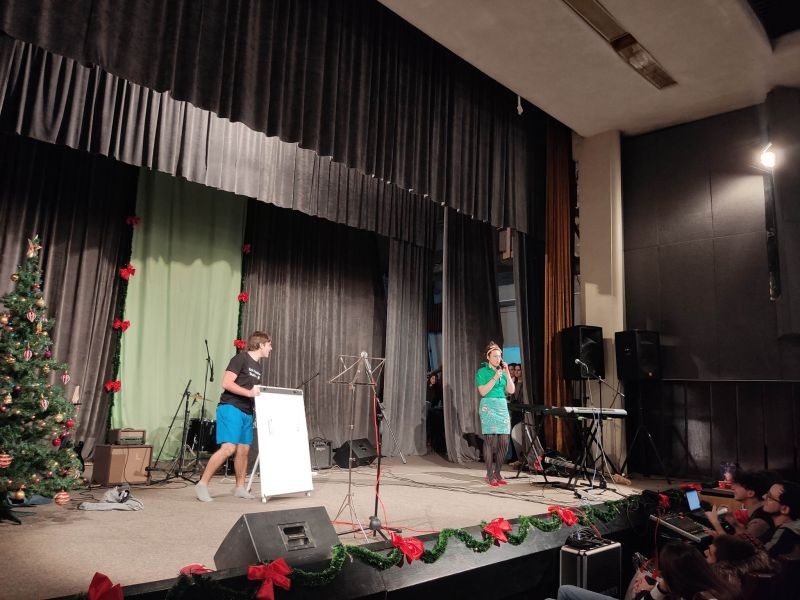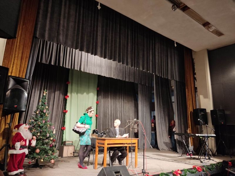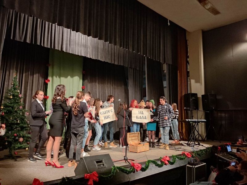 На 23 декември залата на Военния клуб се изпълни с приятели на Хуманитарната гимназия – ученици, учители, служители, родители. Организатори бяха дванадесетокласниците. Участници бяха всички, пожелали със своите таланти да зарадват публиката и да създадат празнично настроение. В началото на проявата приветствахме камерния състав на проект „Музиката вместо улицата“ с техните прекрасни класически изпълнения. Гост на събитието бе и Клуб по спортни танци „Туида“ с двойката Стелиана Петкова-Боян Костадинов. Групата на гимназията „Монолог“ изненада всички присъстващи с няколкото формации, с които се появи на сцената – свириха и пяха ученици от почти всички класове в училище, както и най-малките – „Монолог джуниър“. Смях и забава донесоха хумористичните скечове с участието на г-н Валери Милков – класен ръководител на XIIа клас, човекът-смях – Мартин Тодоров от IXа клас, Димитър Червенков – вече студент, завършил Хуманитарната гимназия през миналата учебна година. Водещи на шоуто бяха Ванеса Иванова, Преслава Желева от Xа клас и Мартин Димитров от Xб клас.